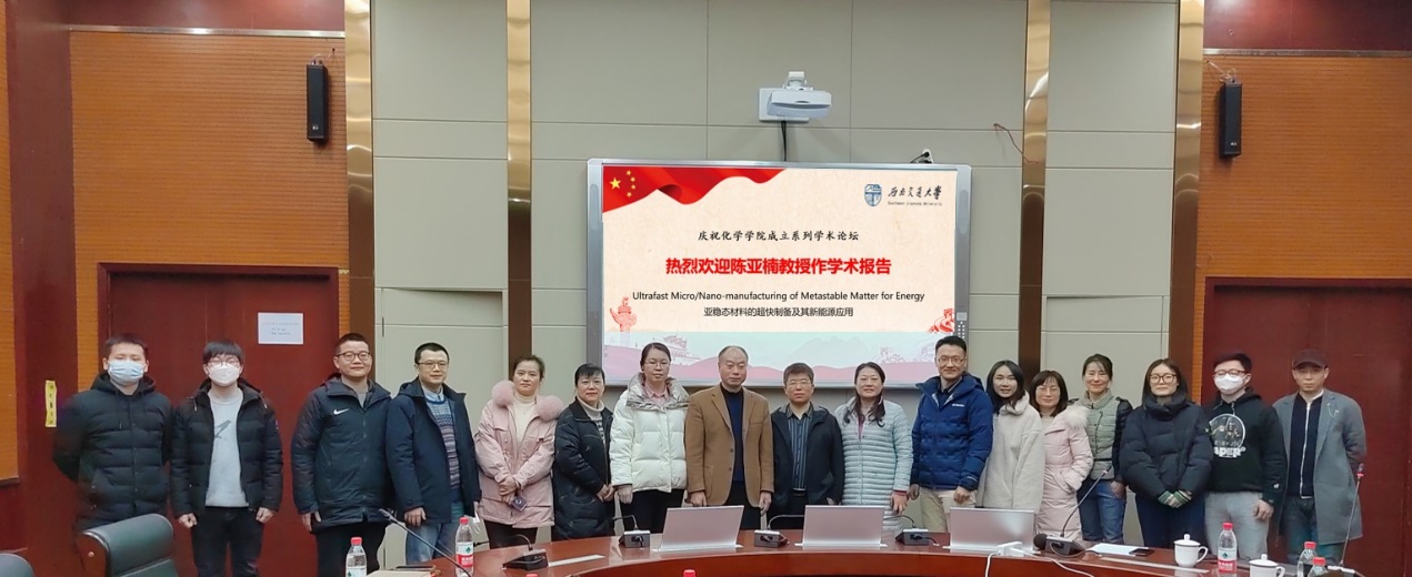 成立,应周祚万教授和李金阳副教授邀请,天津大学“英才计划”研究员(博士生导师)、清华大学“卓越学者”、中国科协青年人才托举项目入选者陈亚楠教授于2023年1月14日来我校开展学术交流,并在九里校区一号综合楼二楼报告厅以“亚稳态材料的超快制备及其新能源应用”为题作了精彩的学术报告。