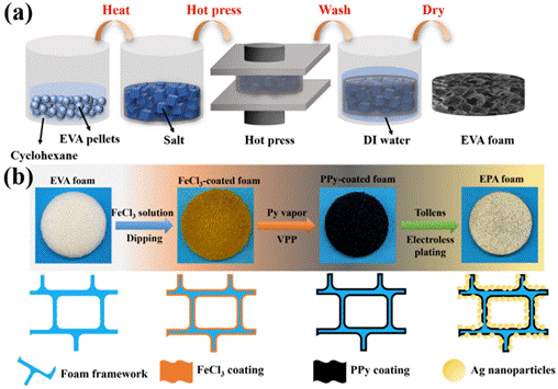 图1. EVA泡沫(a)和EPA泡沫(b)的制备示意图