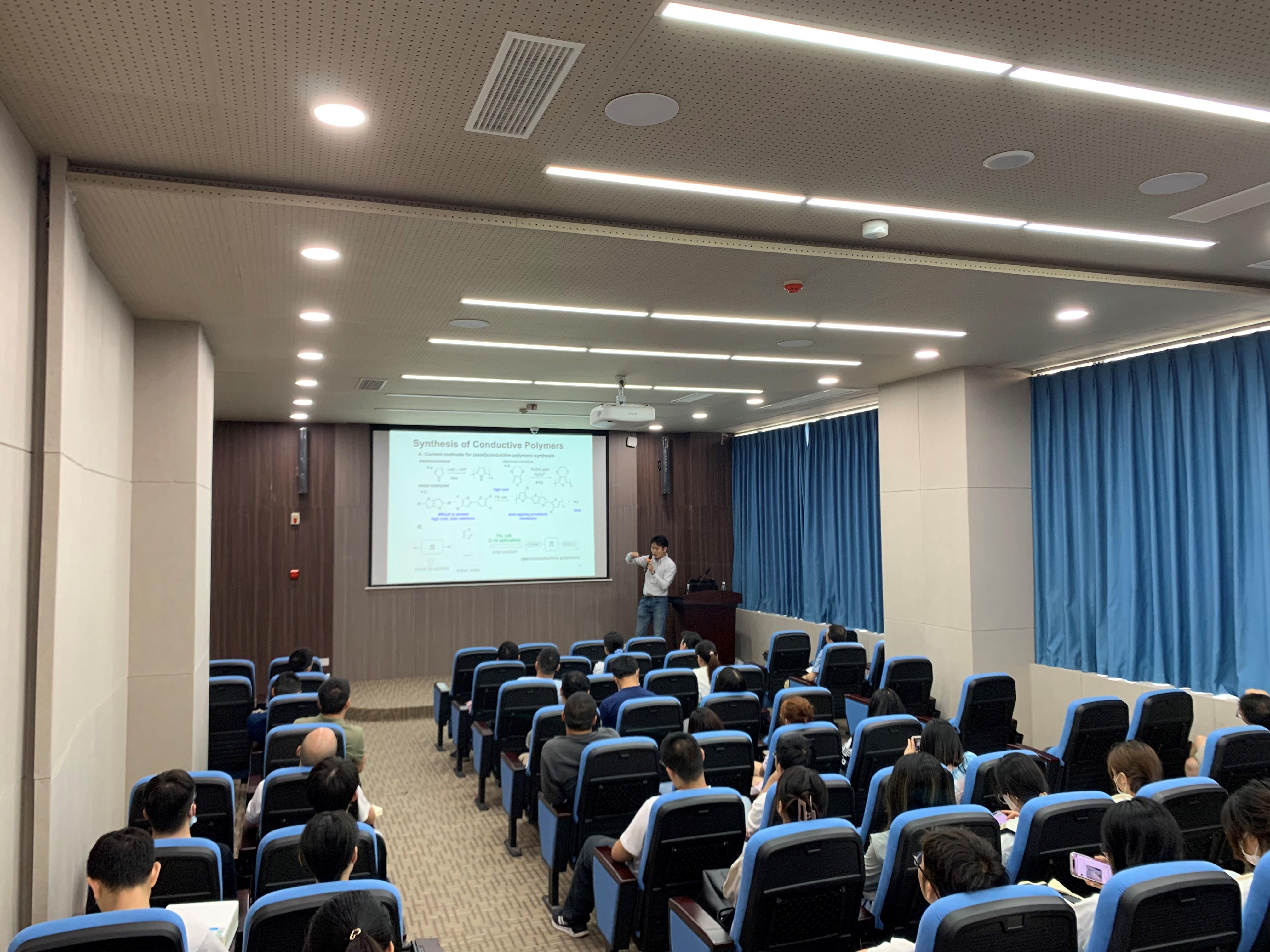 ,并在九里校区工业中心C座103报告厅做了题为“Iron-Catalysis for, and Photocatalysis Inspired by Studying Electronic Materials”的学术报告。报告由学院合成化学系主任及功能有机分子合成团队负责人彭羽教授主持,钮大文教授、王雅雯教授、肖啸教授等院内外师生参加了此次报告。