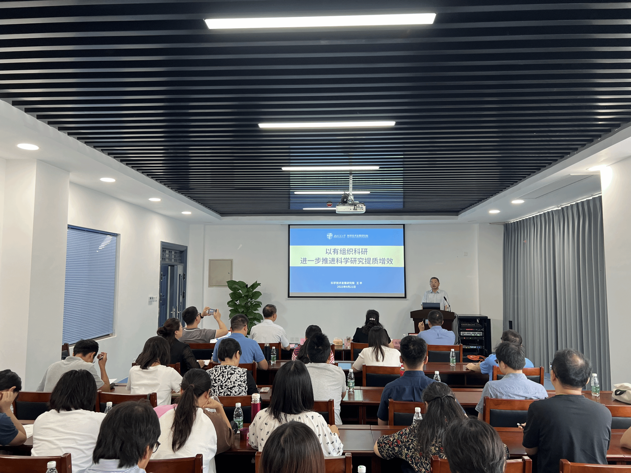 于九里校区工业中心C203会议室召开学院有组织科研工作推进会,学校科学技术发展研究院院长王平教授受邀出席并作《以有组织科研进一步推进科学研究提质增效》主题报告。会议由学院党委书记李国芳主持。