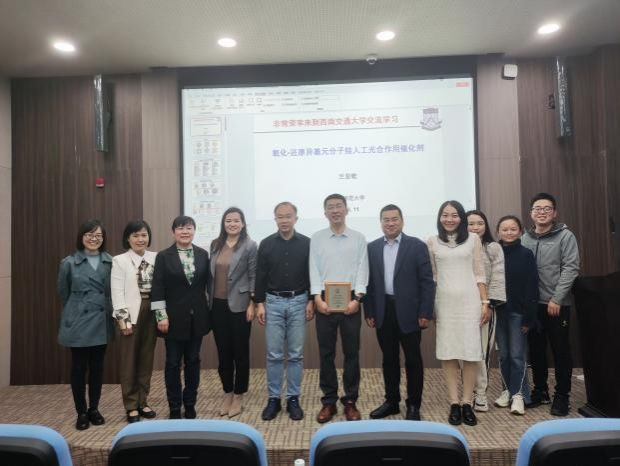 并以“氧化-还原异基元分子结人工光合作用催化剂”为题开展了一场精彩的学术报告。此次报告由王勇副院长主持,王雅雯教授、姜曼副教授、王萃娟副教授、刘霞副教授、鲍雨副研究员、张颜老师、王春燕老师、王颖等教师和40余名研究生参加了此次学术交流活动。