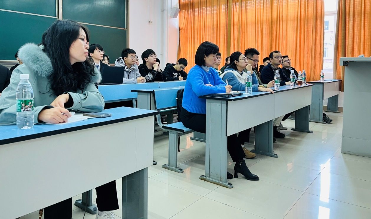 (图1 评委老师和同学们全神贯注地听同学讲解)