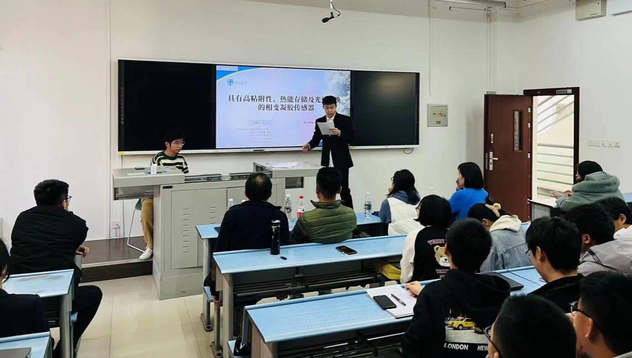 (图7 祁晓东老师指导的《具有高粘附性、热能存储及光热转换的相变凝胶传感器》项目成员答辩)
