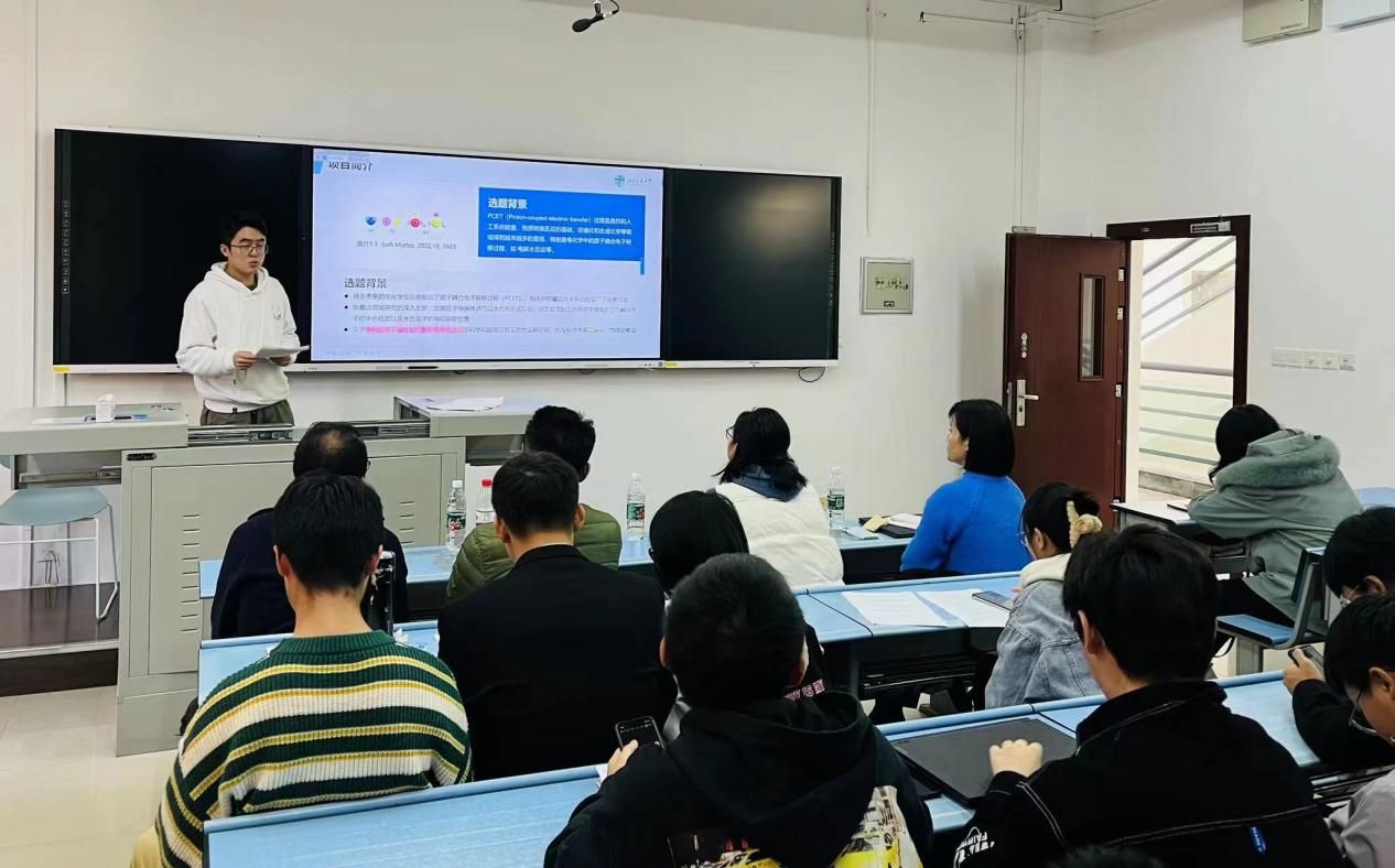 (图6 李金阳老师指导的《二维过渡金属硼化物催化剂的高通量制备及其电解水性能研究》项目成员答辩)