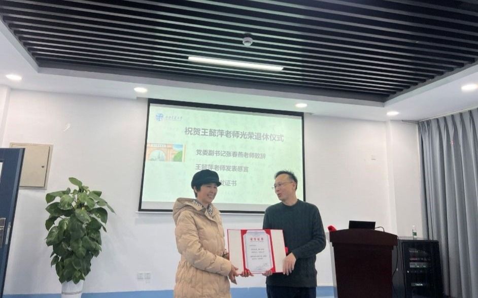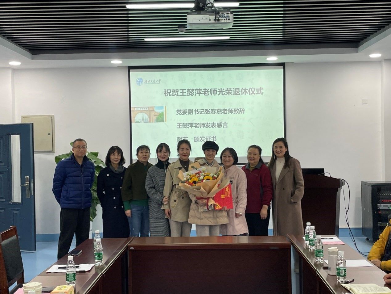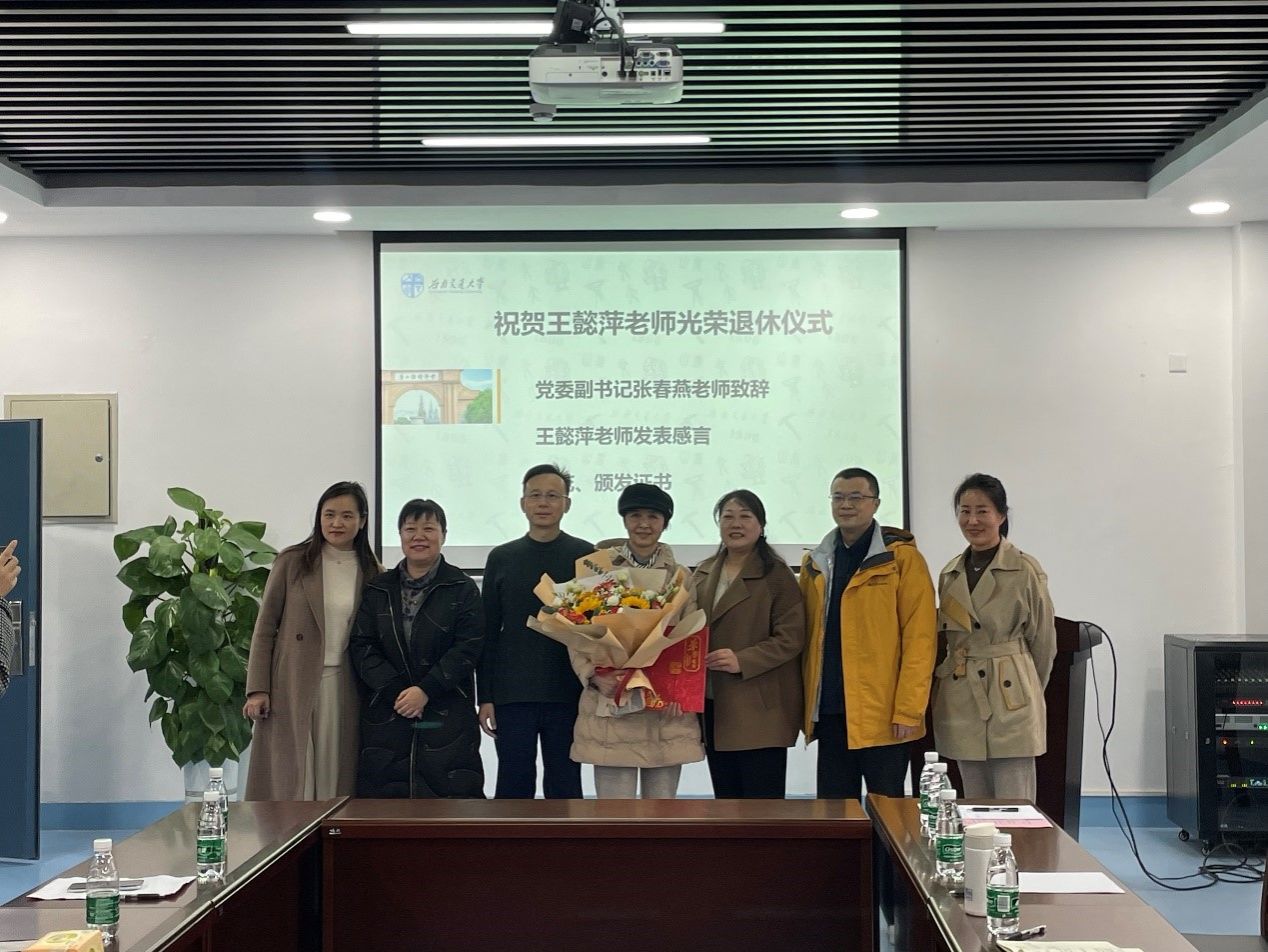 特别为公共化学教学部王懿萍副教授举办了以“岁月鉴初心,荣休敬韶华”为主题的退休欢送会。此次欢送会由学院党委副书记张春燕老师主持,副院长崔树勋教授及学院众多教师一同参加了欢送。
