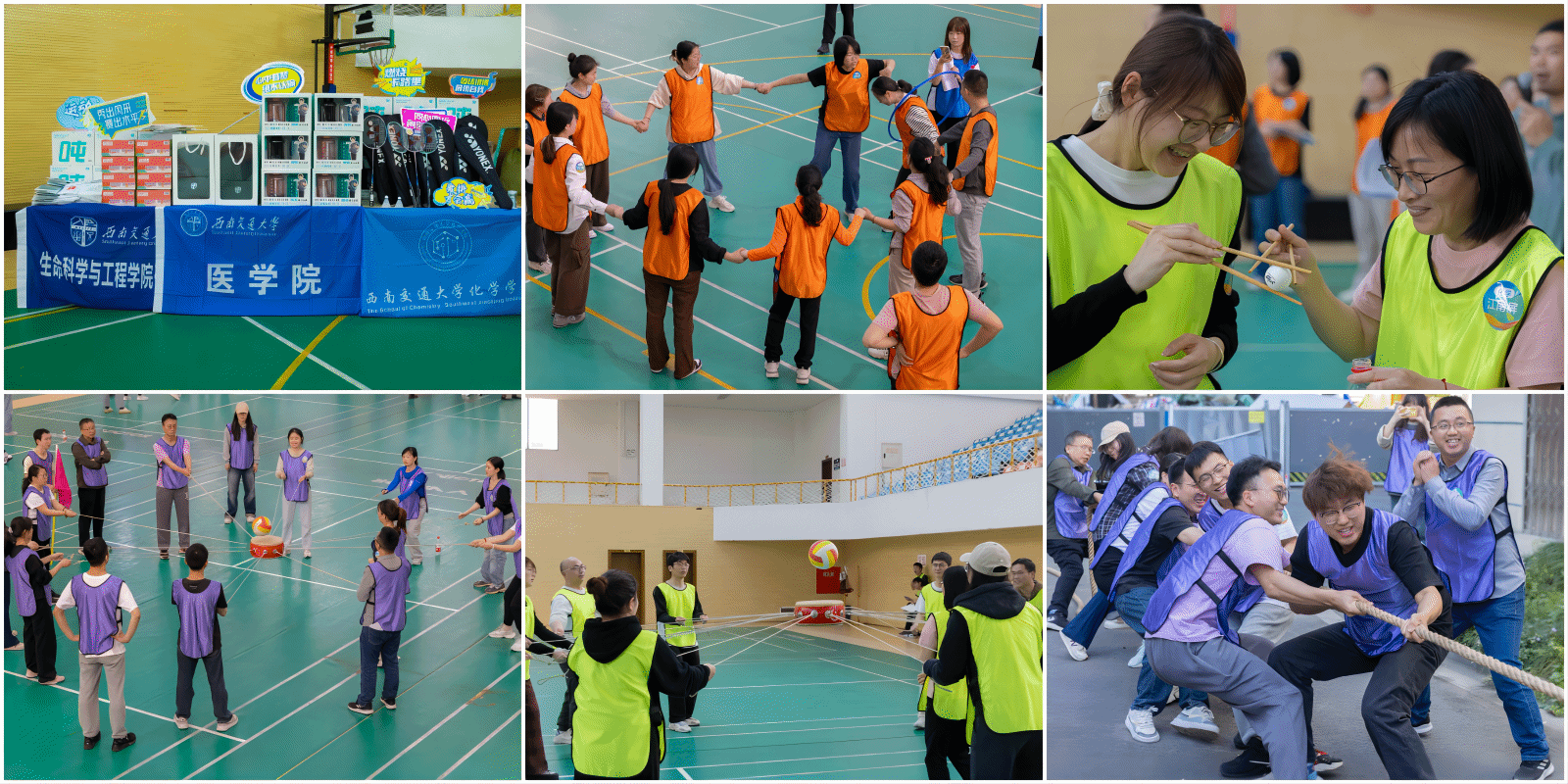 承办的“大健康 大融合 大发展”生命、医学、化学第一届师生趣味运动会在九里校区圆满举办!本次活动得到了校工会和党委学生工作部(学生工作处)的大力支持,三个学院的200余名师生齐聚詹天佑体育馆,通过轻松愉快且妙趣横生的各项运动,鼓励大家团结协作、放松身心,推动形成学院师生交流沟通、优质资源共建共享的良好氛围。