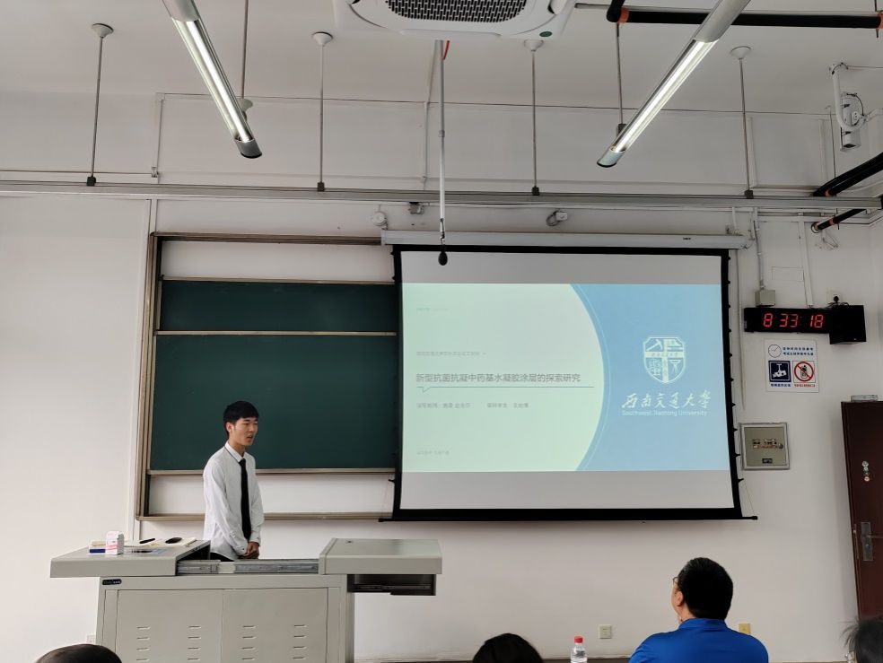 参加答辩的同学早已准备就绪,等待大学期间最后一场实战性的"考试”。他们在答辩前都经过了论文开题、中期检查等阶段精心的准备,以至于他们在答辩过程中以图文并茂的形式,结合PPT阐述自己论文的选题目的、理论框架、研究问题的方法及其实际意义。随后,评委老师针对论文内容提出相关问题,如王勇副院长提出的生物相容性怎么样,抑菌的成分如何,徐晓玲老师提出的涂层前后凝胶化,王雅雯老师提出的核磁分析中结构式,杨静晖老师提出的如何计算接枝率等这样零距离的问答,一方面是考察同学们对自己设计作品制作流程的熟悉程度,另一方面,考察同学们对专业知识的掌握程度及心得体会,以及对自己现在工作的看法。针对答辩老师的各种提问,同学们回答简明准确,虽然仍然存在不足,但是都得到了老师的充分肯定。