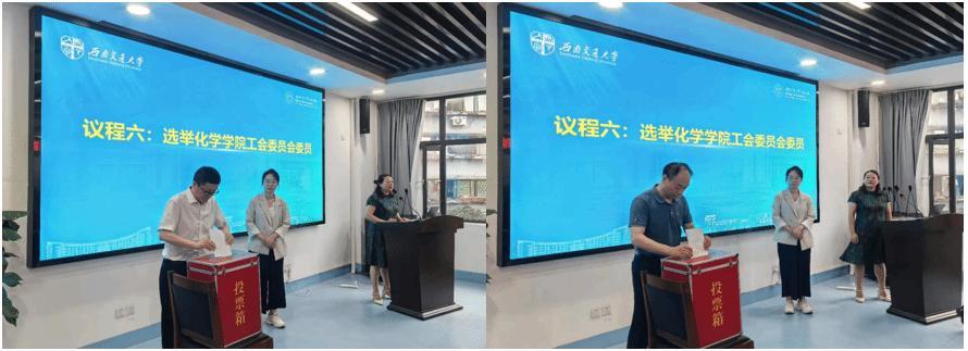 工会委员会第一次全体会议选举,王雅雯为学院工会主席、孔维东为工会副主席。