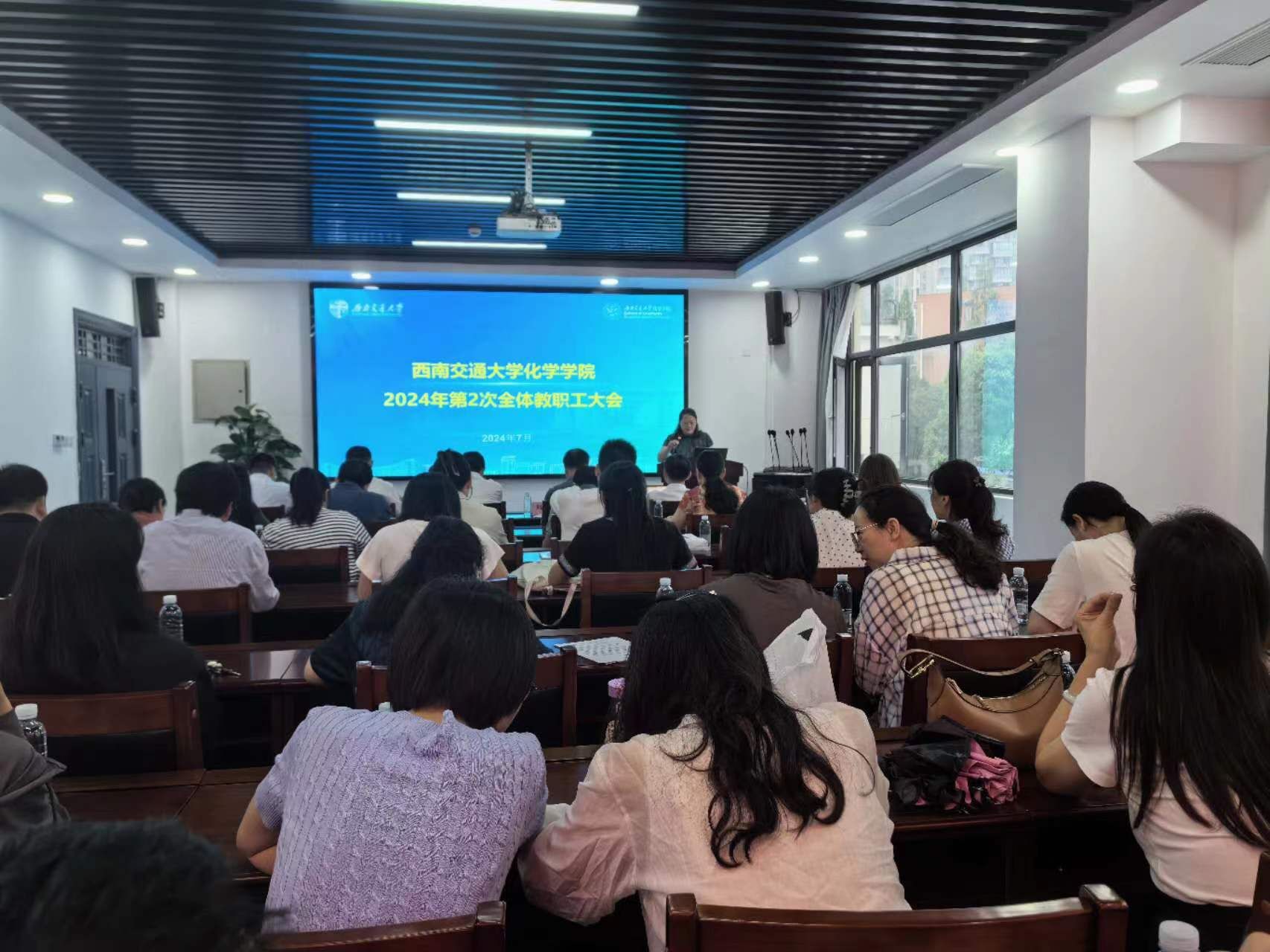 于九里校区工业中心C203会议室召开2024年第2次全体教职工大会。学院党委书记向仲敏,院长周祚万,党委副书记张春燕,副院长王勇、崔树勋,院长助理郑剑峰和全体教职工参加会议。