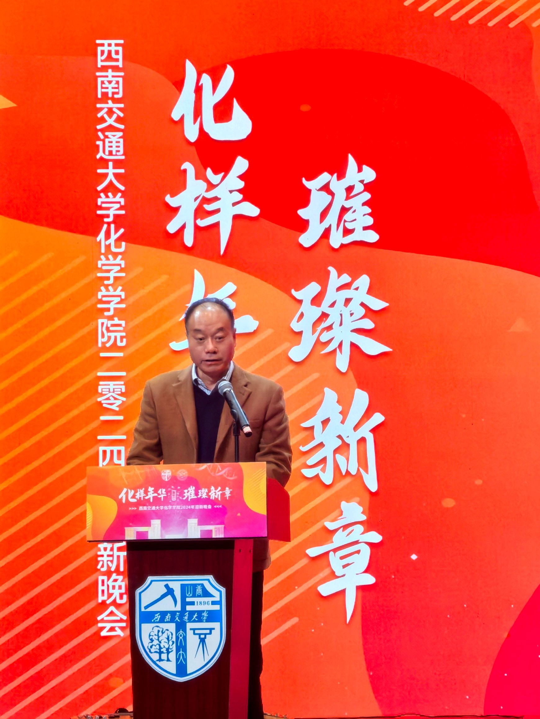 91黑料 院长周祚万教授为晚会致开幕辞。周院长首先向2024年加入学院的新老师、新同学们表示热烈欢迎,向全院师生以及关心支持学院建设发展的各级领导、老师、院友和各界朋友们致以新年祝福和诚挚感谢。随后,周院长回顾总结了这一年来化院师生凝心聚力,奋力谱写学院高质量发展新篇章的工作成绩。展望未来,周院长表示,学院全体师生要上下一心、鼓足干劲,坚持不懈为学校的高质量发展贡献“化学人”的智慧和力量!