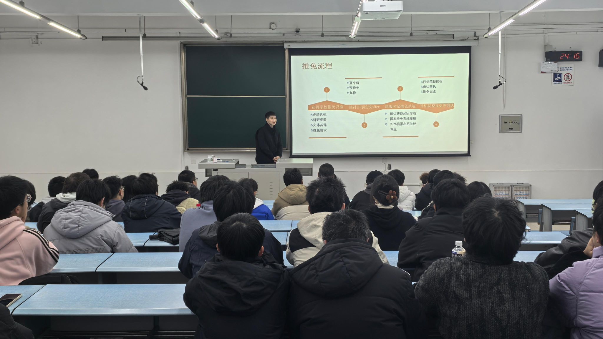 赵高建,高分子2021-01班本科生,中共预备党员,学院青年讲师团成员,推免至中国科学技术大学,曾获中国国际大学生创新大赛(2023)铜奖,全国大学生生命科学竞赛省级二等奖等。赵同学就自我提升、科研探索等方面,强调成就优异学业基础的同时,参与科研项目,发掘内在潜能,塑造核心竞争力。学长还分享了精准选定心仪高校、精心准备申请资料及展示个人特质的方式,以及如何在面试环节中脱颖而出等经验干货。