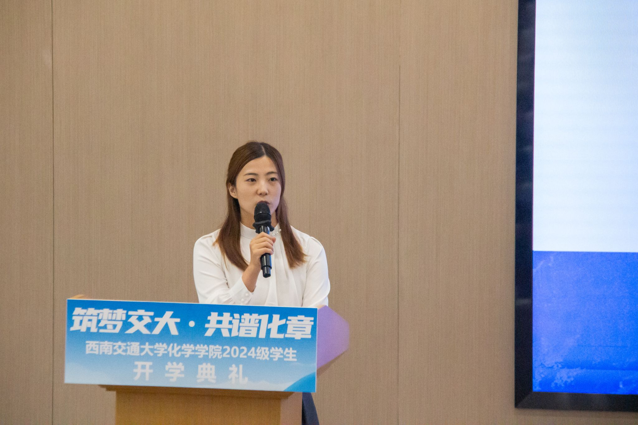 本科生新生代表易佳盈同学回顾了过去高中的辛勤与成长,期待以交大为梦想的新起点,在化院的四年里,将通过刻苦学习、参加活动、提升素质,共同探索科学与创新。希望能在交大的沃土上,让青春在奋斗中绽放光彩。
