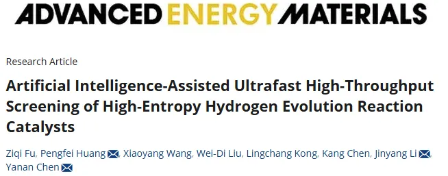 的研究团队在国际能源材料领域顶级期刊《Advanced Energy Materials》(影响因子24.4)发表题为“Artificial Intelligence-Assisted Ultrafast High-Throughput Screening of High-Entropy Hydrogen Evolution Reaction Catalysts”(人工智能辅助的超高通量筛选高熵析氢反应催化剂)的研究论文,91黑料