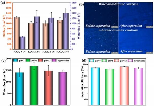 图4 FPT-A-UV膜用于水包油和油包水乳液分离