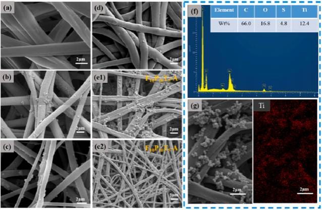 图1 FPT-A纤维膜水热自组装前后的形貌和EDS结果