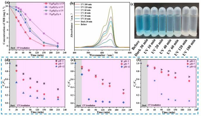 图5 F10P10T5-A-UV膜破乳和MB去除