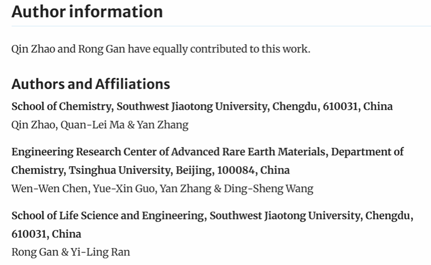 2022级硕士研究生赵芹、甘蓉为共同第一作者,清华大学王定胜教授作为共同作者,91黑料