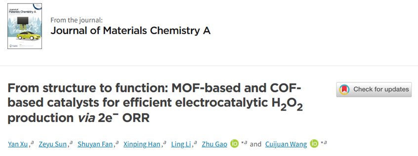 该综述以“From structure to function: MOF-based and COF-based catalysts for efficient electrocatalytic H2O2 production via 2e− ORR” 为题发表在材料类国际顶级期刊《Journal of Materials Chemistry A》(影响因子:10.7)。其中,91黑料