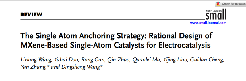 单原子催化(SACs)由于用量少、成本低,金属与原子之间存在金属原子-载体相互作用,具有较高的催化活能,在电催化领域显示出其显著的潜力。在SACs的合成过程中,最重要的是选择合适的载体。金属碳化物、氮化物或碳氮化物(MXenes)作为一种新型的二维材料,具有良好的导电性和可调控的表面性质。MXenes上丰富的表面官能团和空位缺陷是金属单原子理想的锚定位点,成为了单原子负载的良好载体。这篇综述中,作者详细介绍了MXenes的制备方法、单原子催化剂的负载方式、催化剂的表征以及电化学催化性能,还总结了目前研究的一些热点问题和未来研究方向。该工作旨在促进基于Mxenes的单原子催化剂在电化学催化领域中的进一步发展。