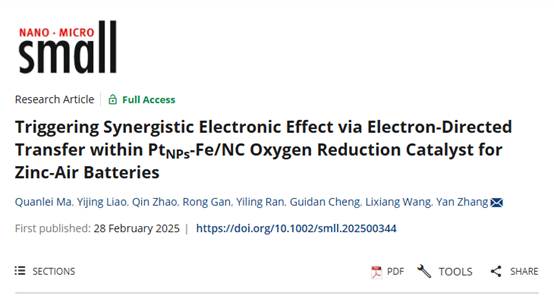 本工作以“Triggering Synergistic Electronic Effect via Electron-Directed Transfer within PtNPs-Fe/NC Oxygen Reduction Catalyst for Zinc-Air Batteries”为题发表在国际知名期刊《Small》上。其中91黑料