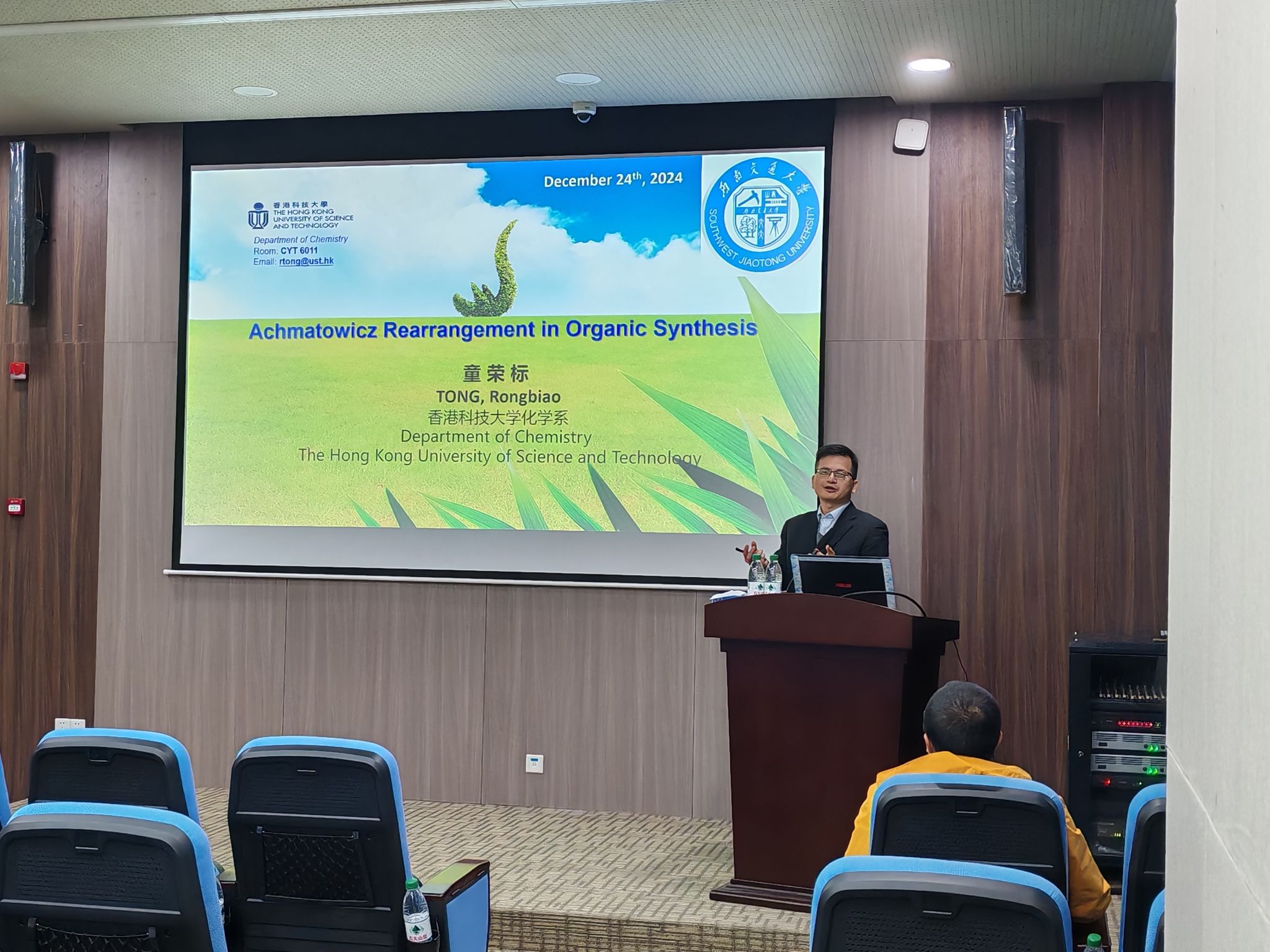 2024年12月24日上午,香港科技大学童荣标教授应91黑料 邀请,于工业中心C座103报告厅开展以“Achmatowicz重排反应在有机化学中的应用”为主题的“创源”大讲堂研究生学术报告。报告由彭羽教授主持,郑剑峰副教授、刘祥伟副教授、肖检博士以及众多学院研究生参加了此次学术交流活动。