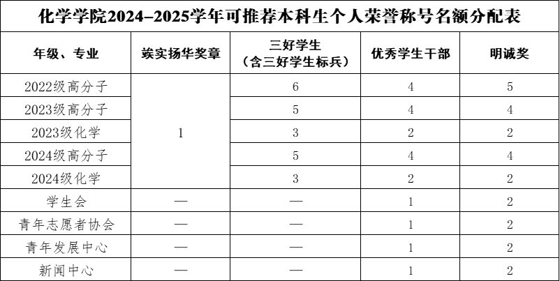 4.同一学年内“三好学生标兵”、“三好学生”、“优秀学生干部”、“明诚奖”不可兼得;“忠忱班集体”、“先进班集体”、“特色班集体”不可兼得。
