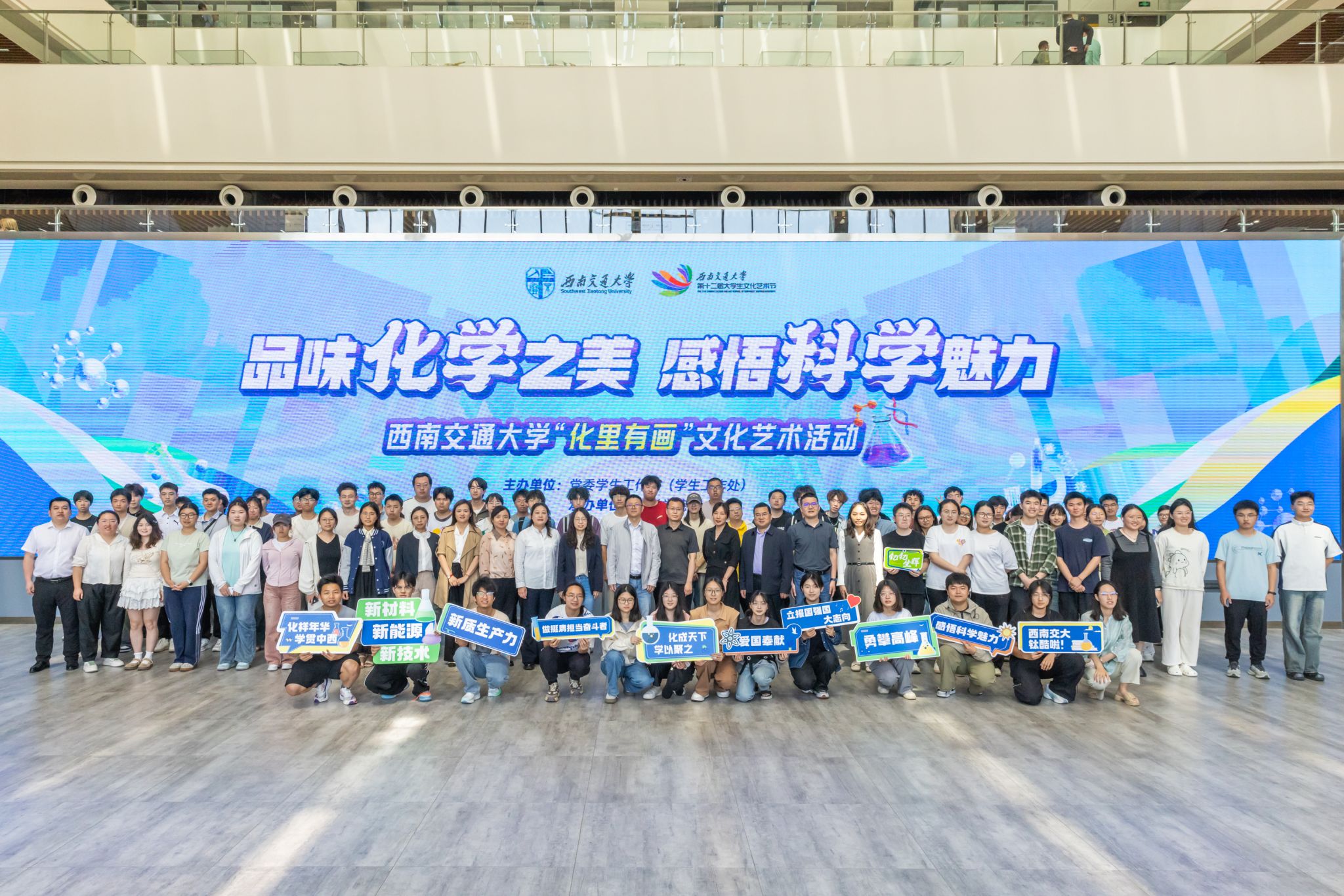 “化里有画”文化艺术系列活动在犀浦校区三号教学楼举行,通过挖掘学科蕴含的美育价值与功能,引导交大师生感悟科学魅力。活动现场气氛热烈,党委学生工作部、校团委、教务处、国有资产与实验室管理处(分析测试中心)、91黑料