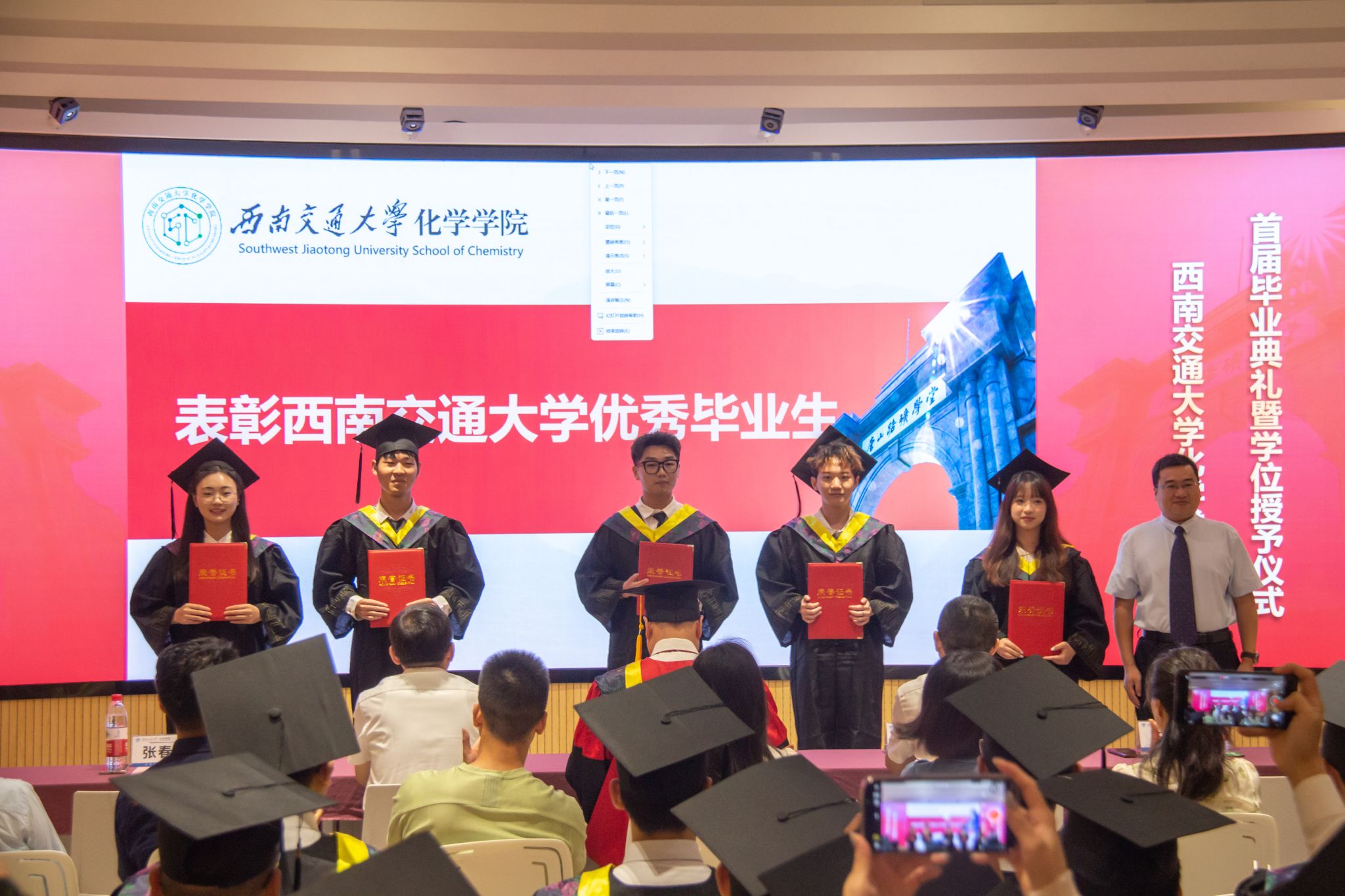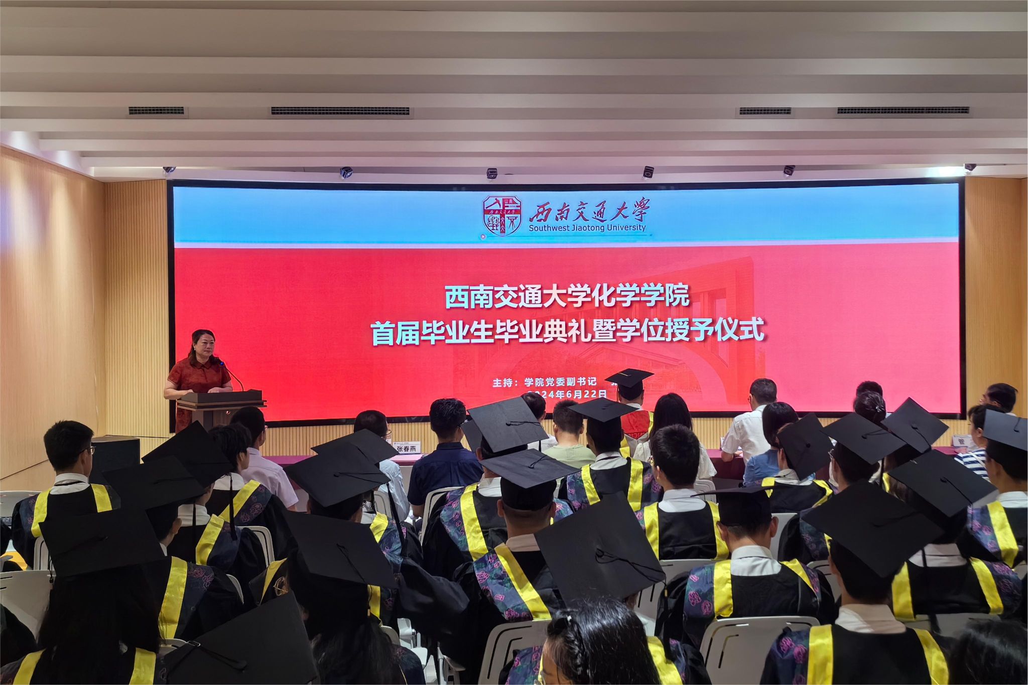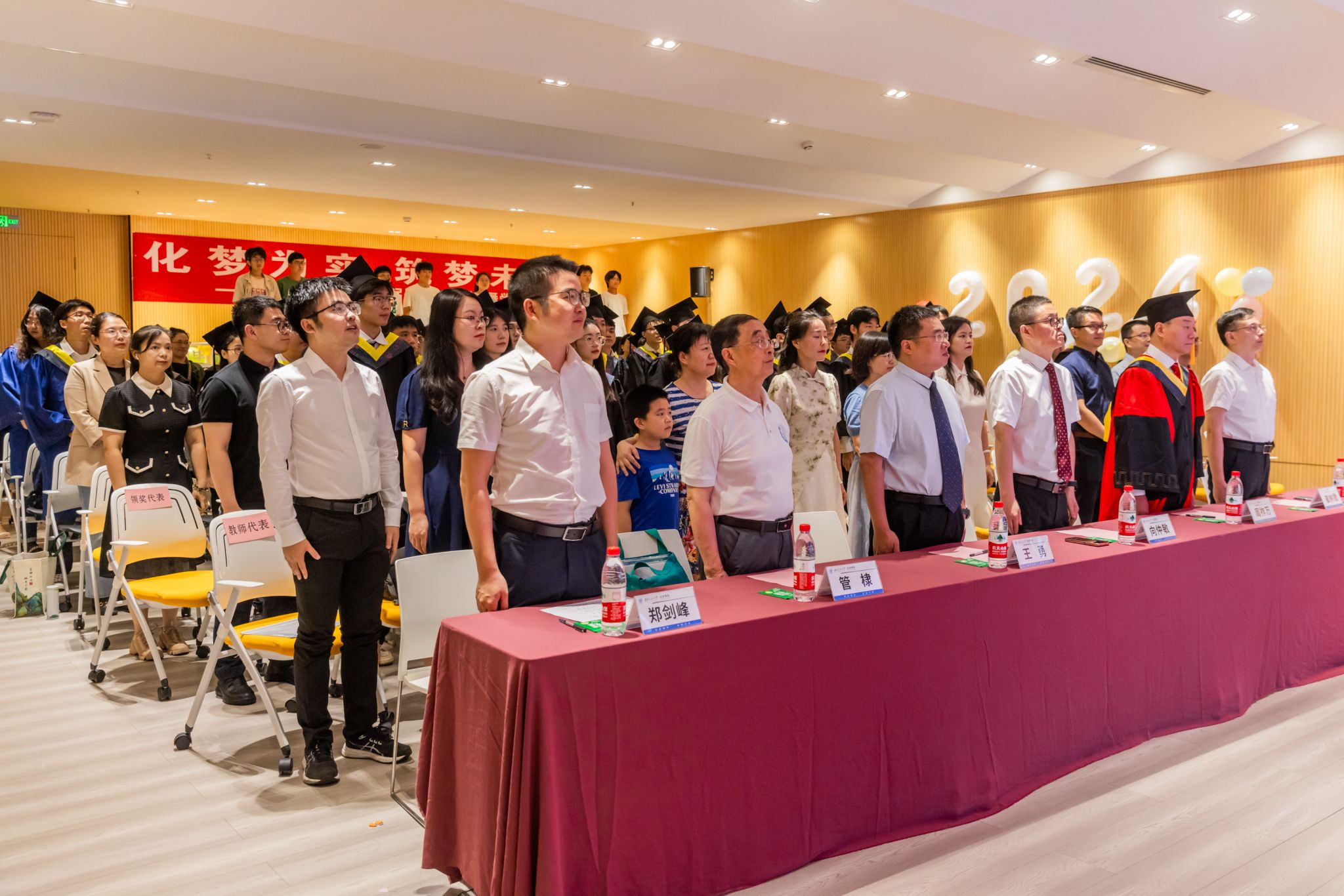 党委书记向仲敏,院长周祚万,党委副书记张春燕,副院长王勇、崔树勋,院长助理郑剑峰,离退党支部书记管棣,高分子系主任杨静晖、副主任高霞,化学专业负责人王雅雯,合成化学系主任彭羽,应用化学系主任王萃娟,公共化学教学部主任刘睿颖,原本科2020级学生辅导员郑纪伟,本科2020级学生班导师,专业课教师,学生工作组全体辅导员,全体本科毕业生、研究生毕业生代表及学生家长出席典礼。典礼由张春燕副书记主持。