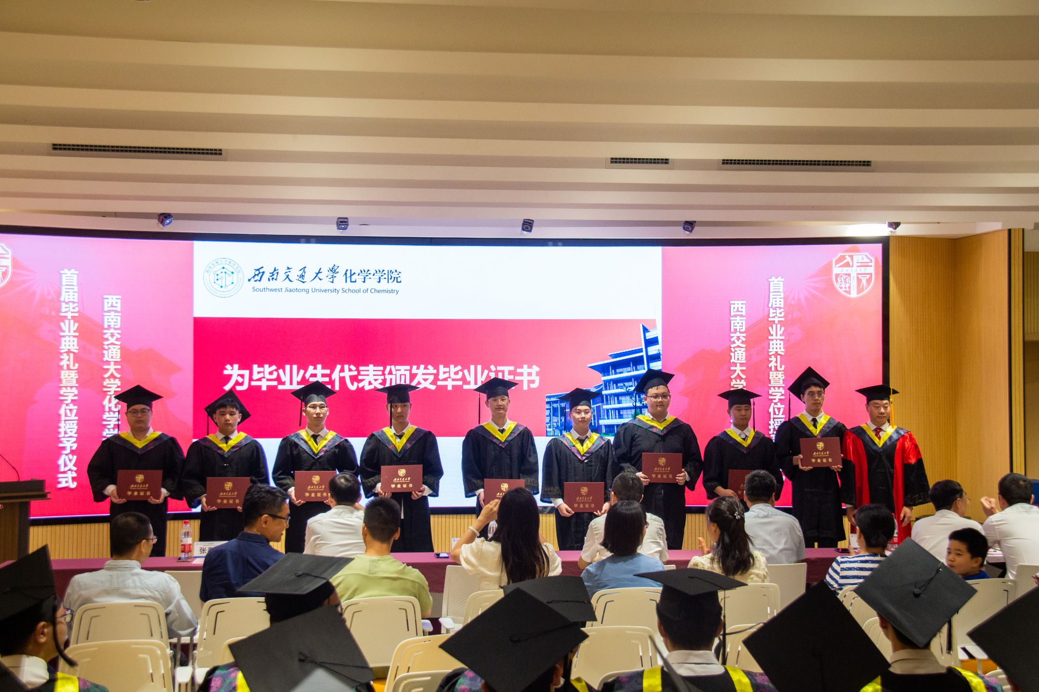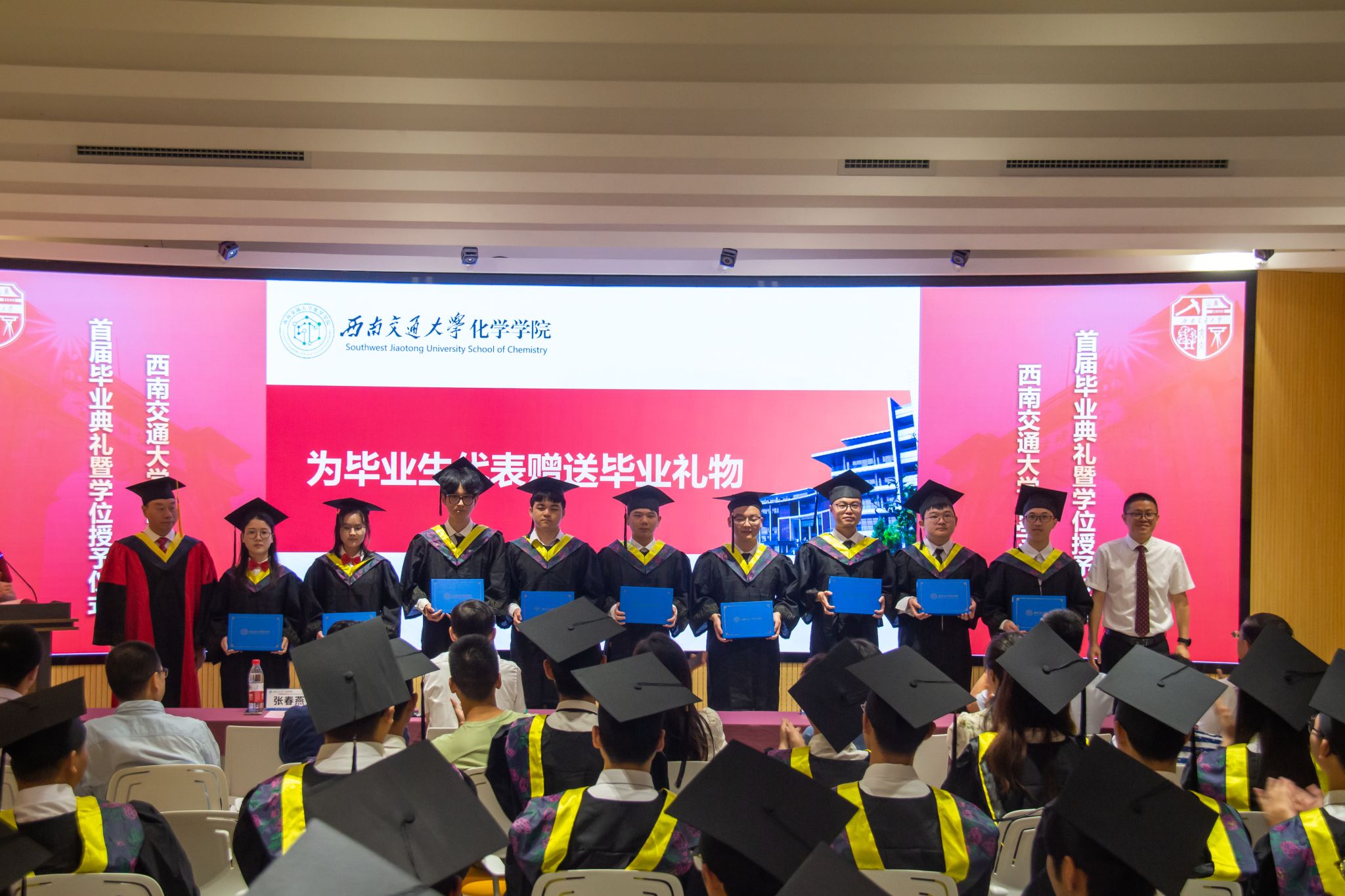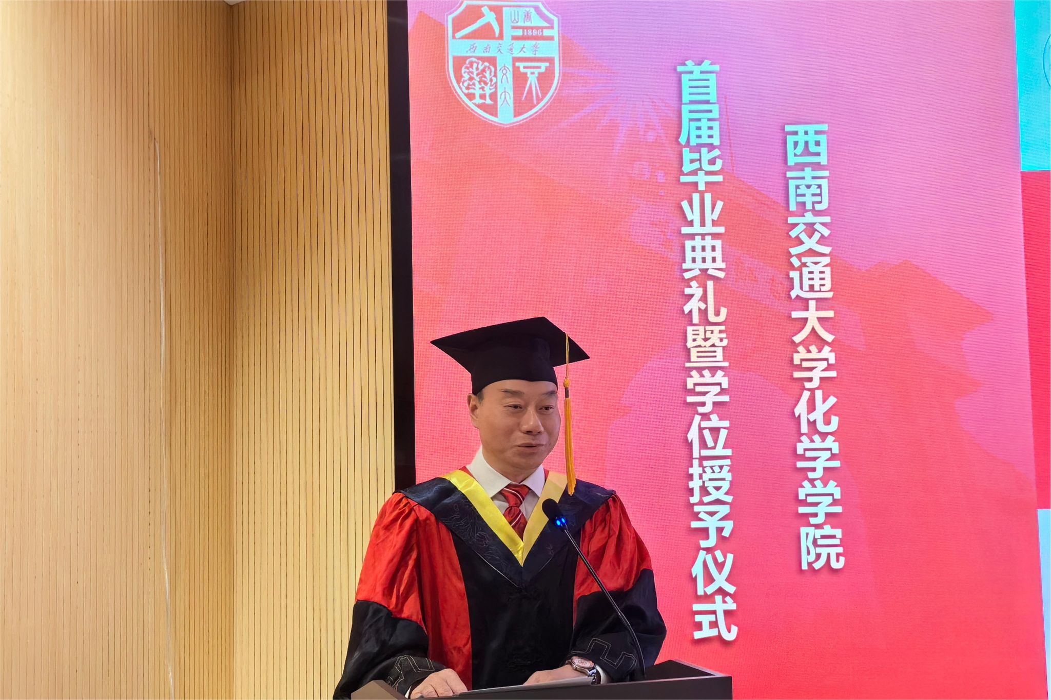 党委书记向仲敏,院长周祚万,党委副书记张春燕,副院长王勇、崔树勋,院长助理郑剑峰,离退党支部书记管棣,高分子系主任杨静晖、副主任高霞,化学专业负责人王雅雯,合成化学系主任彭羽,应用化学系主任王萃娟,公共化学教学部主任刘睿颖,原本科2020级学生辅导员郑纪伟,本科2020级学生班导师,专业课教师,学生工作组全体辅导员,全体本科毕业生、研究生毕业生代表及学生家长出席典礼。典礼由张春燕副书记主持。