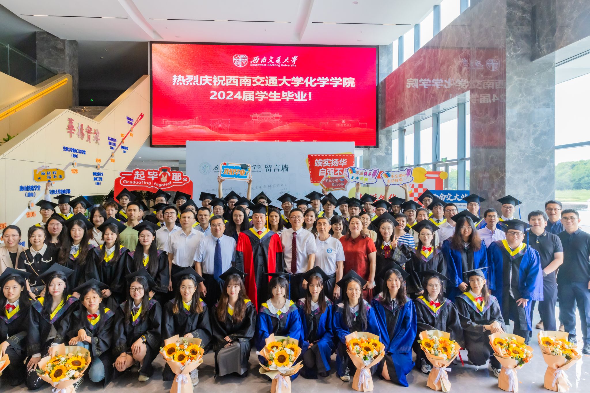 2024届毕业生与学院领导老师、家长代表合影留念,全体毕业生用“化样年华 求实创新”的响亮口号,表达了对母院的深深眷恋和美好祝愿。