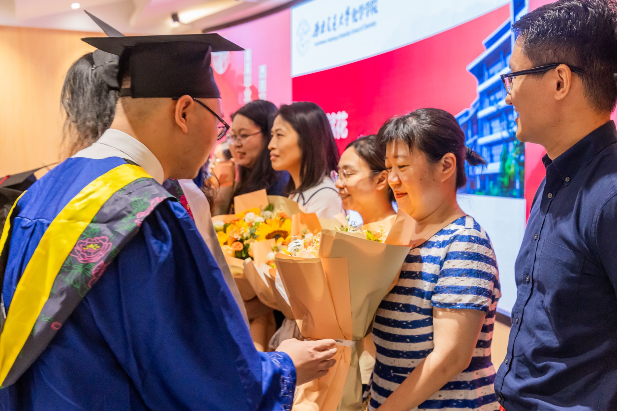 临别之际,周院长对毕业生们提出了三点希望和嘱托:一是要以德润身,顺应时代之变;二是要专业立身,直面全球挑战;三是要养性修身,笑对人生起伏。